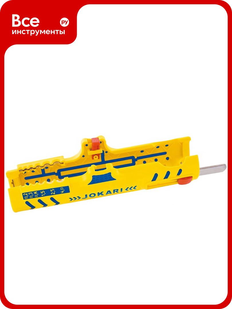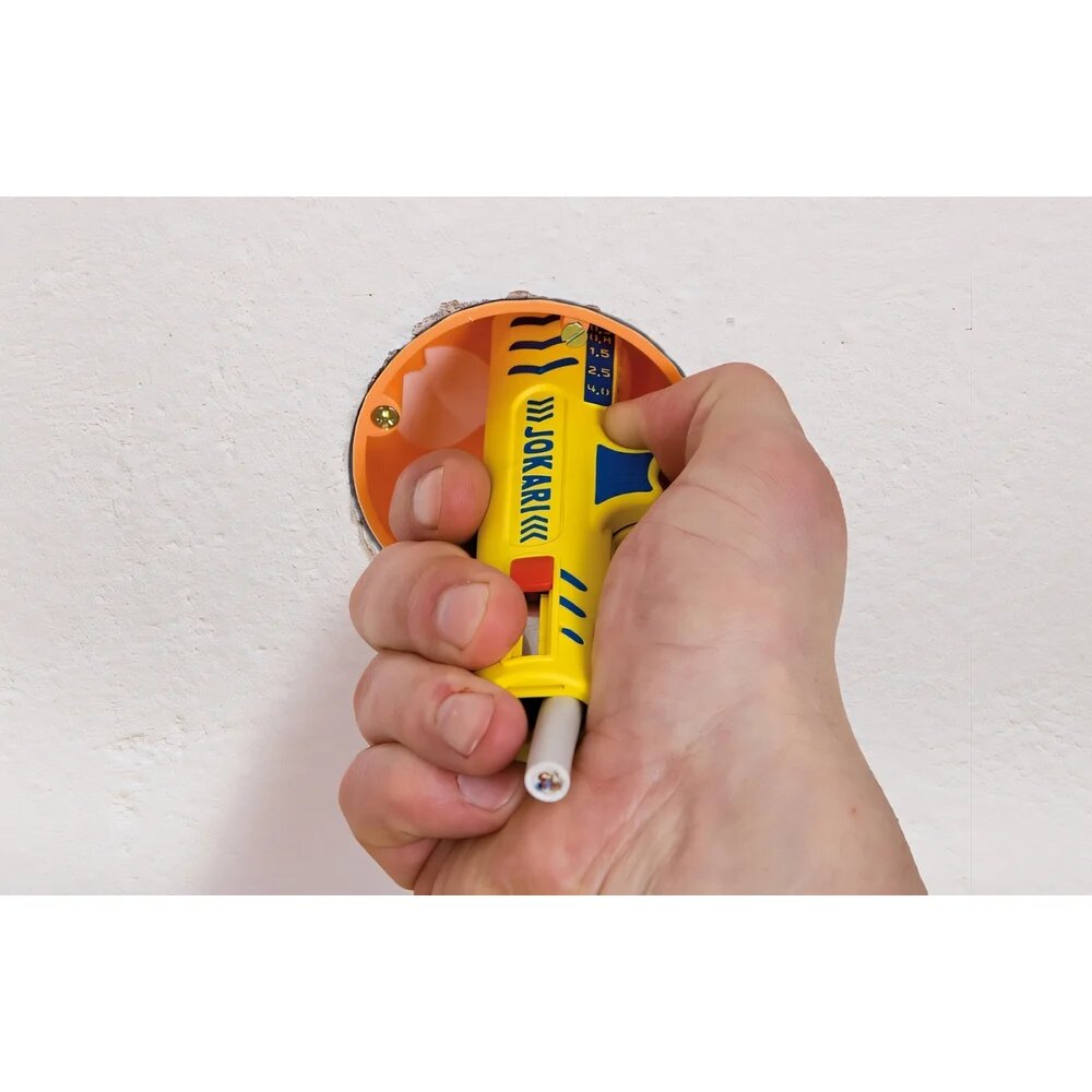 Инструмент для снятия изоляции Jokari Super Stripper N15 30155 не требует установки глубины резки, так как лезвие специальной формы автоматически подстраивается к размеру кабеля.