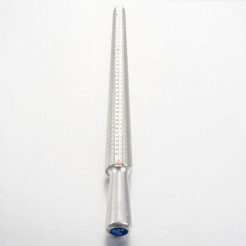 Изготовленный из нержавеющей стали, данный инструмент отличается высокой прочностью и долговечностью. Его длина составляет 247 мм, а ширина и высота — 25 мм, что делает его удобным в использовании. На поверхности мандреля имеется разметка, которая поможет вам точно определять размеры колец. Однако стоит отметить, что шкала может быть не очень точной, и для удобства работы мы готовы предоставить таблицу соответствия размеров по запросу на электронную почту.