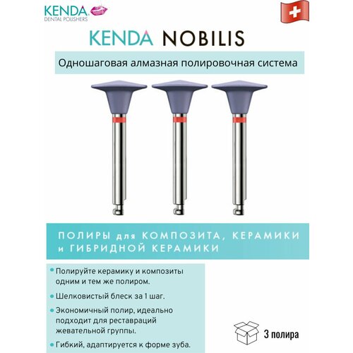 Kenda Nobilis - полир алмазный стоматологический для композитов, керамики и гибридной керамики 3 шт, Кенда.