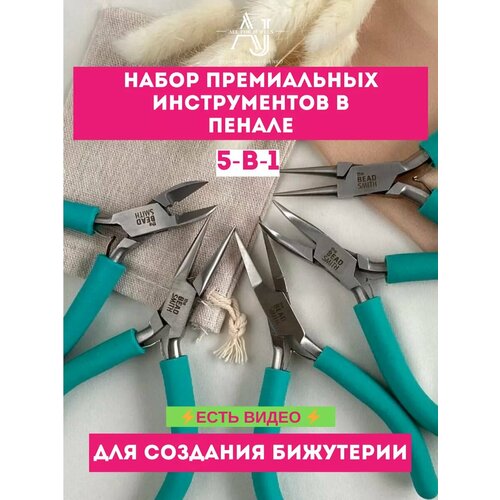 В наборе собраны базовые инструменты, без которых невозможно собирать бижутерию : ✅1 тонкогубцы (ими мы работаем с колечками, проволокой, загибаем пины). ✅1 круглогубцы для рукоделия (загибаем пины и проволоку, накручиваем колечки) ✅1 кусачки (предназначены для перекусывания мягких пинов, эластичной лески, ювелирного тросика и проволоки) ✅1 плоскогубцы для рукоделия (используем для бережного размыкания и крепления колечек и другой фурнитуры, для работы с тонкими и обычными цепями). ✅1 инструмент - утконосы (подходят для работы с колечками, цепями, а также для труднодоступных мест) ✅ пенал для хранения.