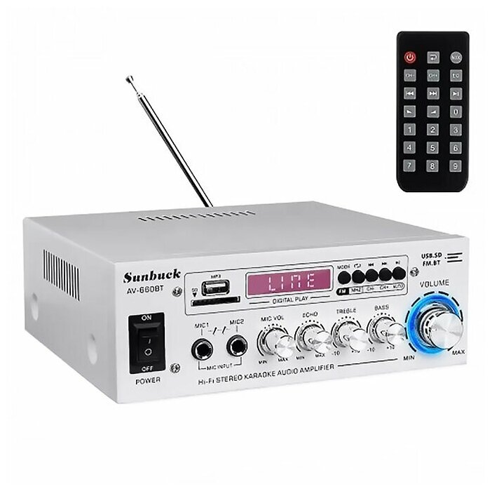 Интегральный Bluetooth усилитель Sunbuck AV-660BT (1200 Вт, USB, цвет белый): сравнение цен, характеристики, фото, актуальное наличие и цены.