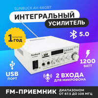 Купить Интегральный Bluetooth усилитель Sunbuck AV-660BT (1200 Вт, USB, цвет белый) с доставкой по всей России.