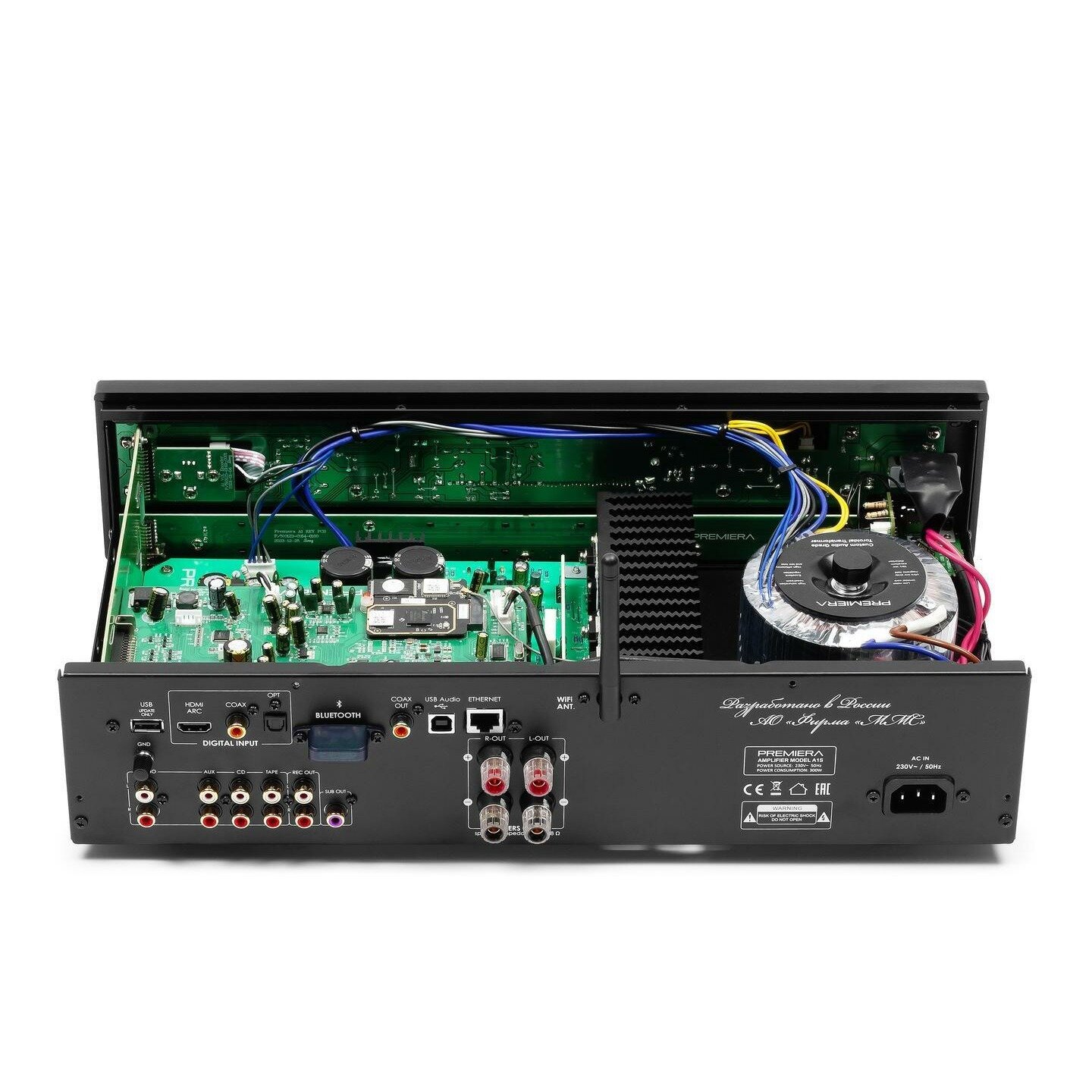 Premiera A1S - современный интегральный Hi-Fi стереоусилитель класса AB со встроенными сетевым проигрывателем, MM-фонокорректором, ЦАП, Bluetooth, HDMI ARC, Wi-Fi и AirPlay 2, с номинальной выходной мощностью 51 Вт на канал.