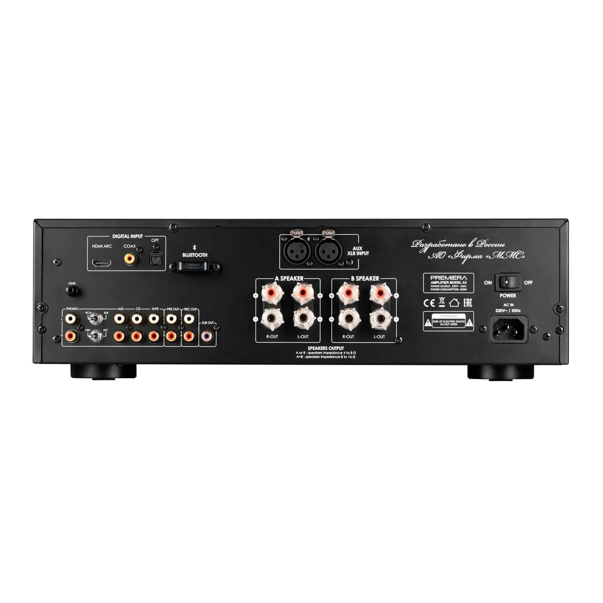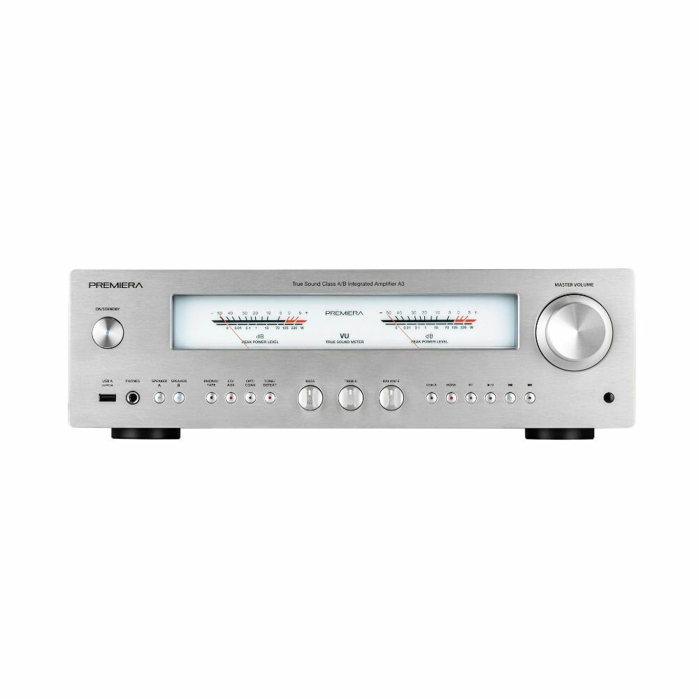 Premiera A3 – разработанный в России высококачественный интегральный Hi-Fi стереоусилитель класса AB со встроенными ММ/МС-фонокорректором, ЦАП, Bluetooth aptX, HDMI ARC и с номинальной выходной мощностью 110 Вт на канал (8 Ом) предназначен для использования в профессиональных и домашних стереосистемах. Широкие функциональные возможности делают усилитель универсальным, а благодаря разнообразию подключений его можно использовать почти с любыми источниками для воспроизведения – как аналоговыми, так и цифровыми.