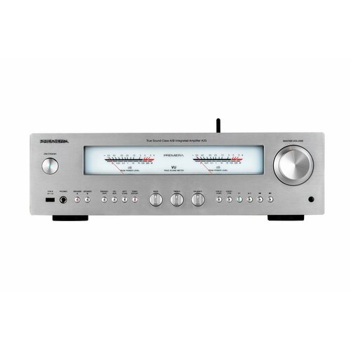 Premiera A3S - современный интегральный Hi-Fi стереоусилитель класса AB со встроенными сетевым проигрывателем, MM/MC фонокорректором, ЦАП, Bluetooth, HDMI ARC, Wi-Fi и AirPlay 2, с номинальной выходной мощностью 110 Вт на канал. При общей сдержанности дизайна, свойственной всем устройствам Premiera, A3S выделяется своими крупными и яркими стрелочными VU-индикаторами вместо дисплея на лицевой панели и ручками темброблока под ними. Эти два элемента придают модели нео-винтажный вид, столь модный сегодня. При этом управление усилителем без дисплея и меню не стало менее удобным – кнопки и потенциометры прекрасно справляются, даже сложные процедуры вроде обновления ПО или возврата к заводским установкам можно провести, используя комбинации кнопок на лицевой панели. К тому же всегда поможет пульт дистанционного управления.