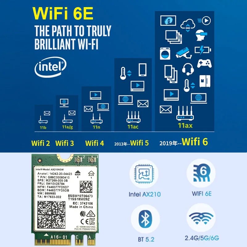 Купить Intel AX210 WiFi 6E Bluetooth 5.2 сетевая карта, ax210-8DB-set с доставкой по всей России. Intel AX210 WiFi 6E Bluetooth 5.2 сетевая карта, ax210-8DB-set: сравнение цен, характеристики, фото, актуальное наличие и цены.