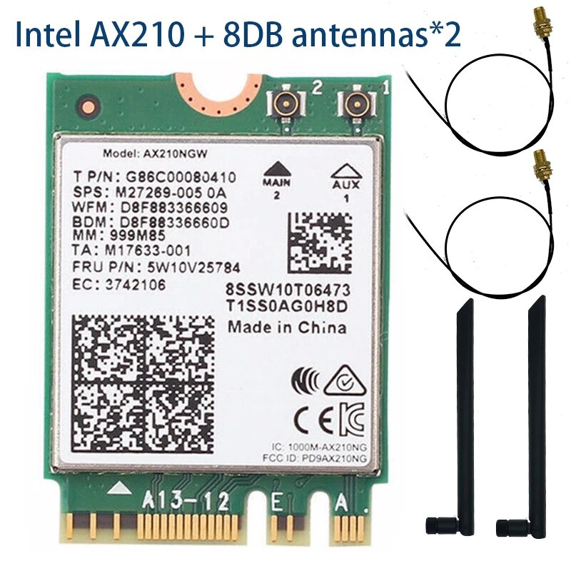 Купить Intel AX210 WiFi 6E Bluetooth 5.2 сетевая карта, ax210-8DBantennas с доставкой по всей России. Intel AX210 WiFi 6E Bluetooth 5.2 сетевая карта, ax210-8DBantennas: сравнение цен, характеристики, фото, актуальное наличие и цены.