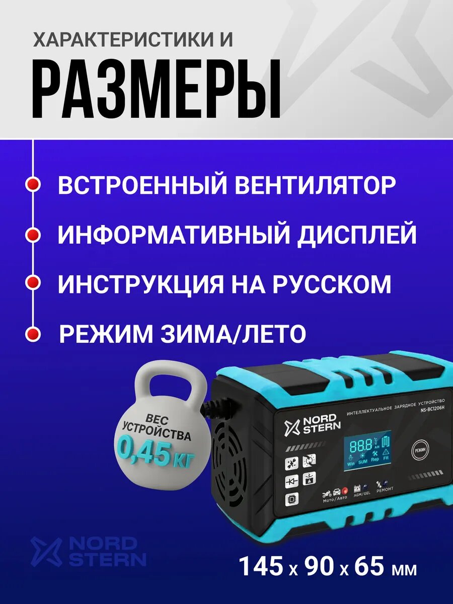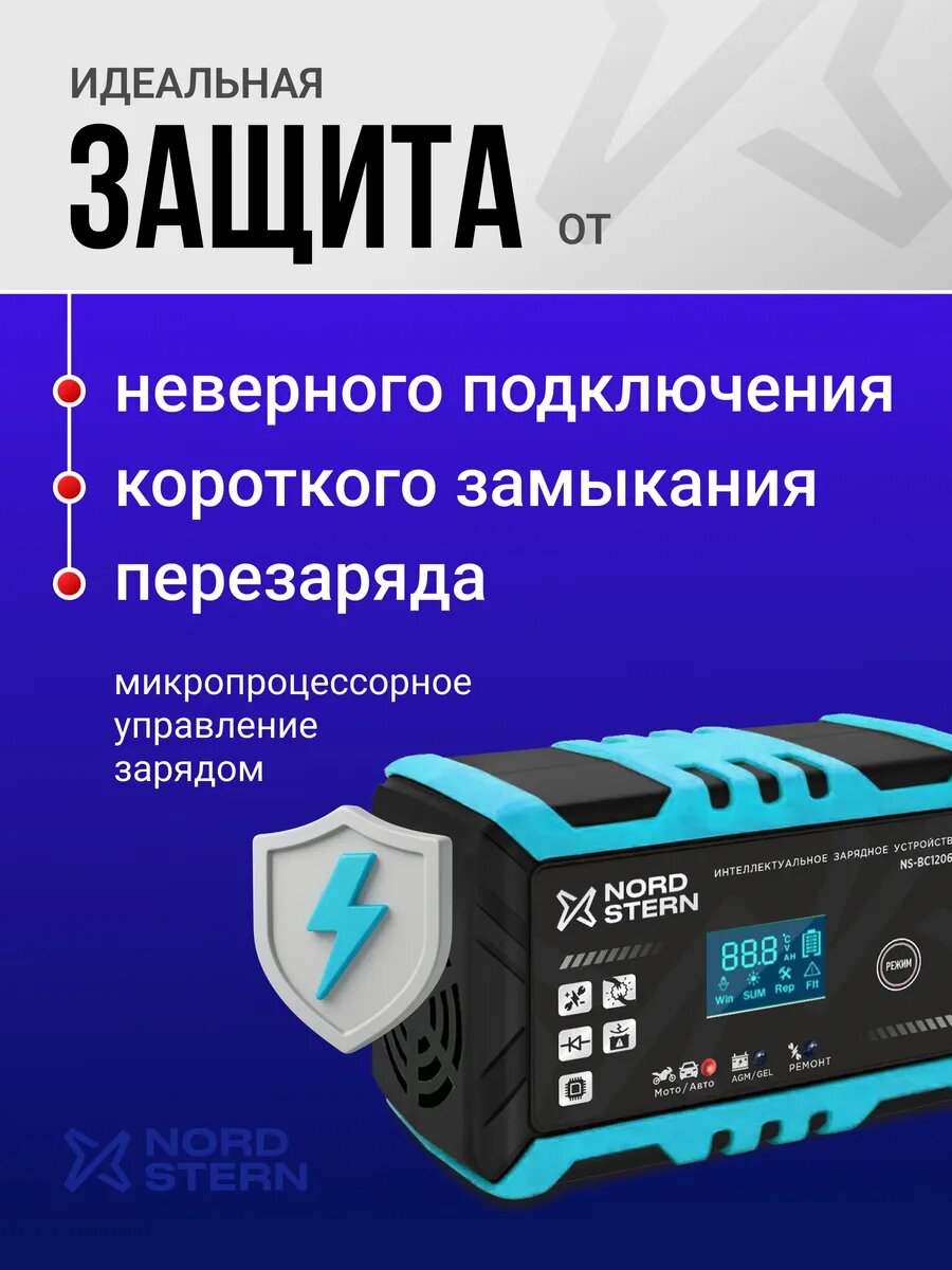 Интеллектуальное зарядное устройство NORD STERN для аккумулятора автомобиля, 12V, 7A, автоматическое, LED-дисплей
