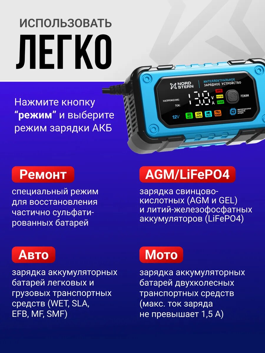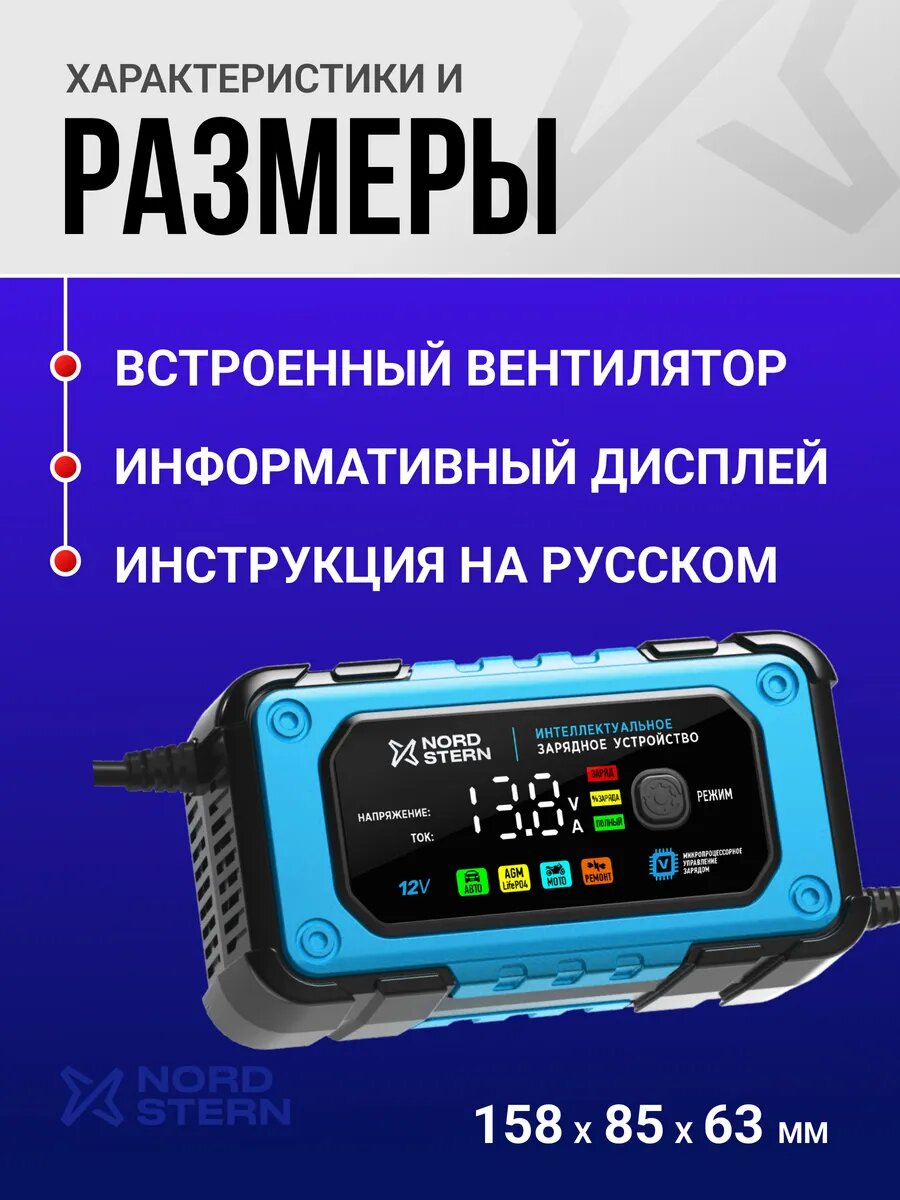 Купить Интеллектуальное зарядное устройство NORD STERN для аккумулятора автомобиля, 12V, 7A, автоматическое, LED-дисплей с доставкой по всей России. Интеллектуальное зарядное устройство NORD STERN для аккумулятора автомобиля, 12V, 7A, автоматическое, LED-дисплей: сравнение цен, характеристики, фото, актуальное наличие и цены.