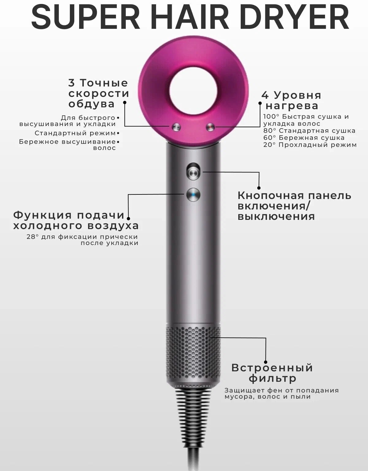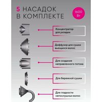 | Насадки | диффузор, для выпрямления, для непослушных волос, концентратор |