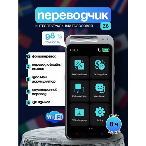 AI Translator (Z6) - это устройство для перевода, которое станет незаменимым спутником в ваших путешествиях и делах. С экраном размером 4,1 дюйма, этот компактный переводчик удобно помещается в кармане и готов к работе в любой момент. Его мощный аккумулятор на 1500 мАч обеспечивает до 8 часов непрерывной работы, а в режиме ожидания он сможет сохранять заряд до 10 дней.