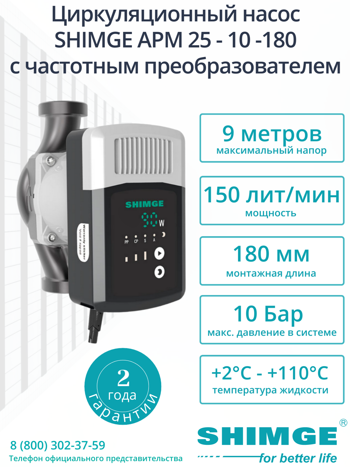 Интеллектуальный циркуляционный насос 25-10-180 SHIMGE APM