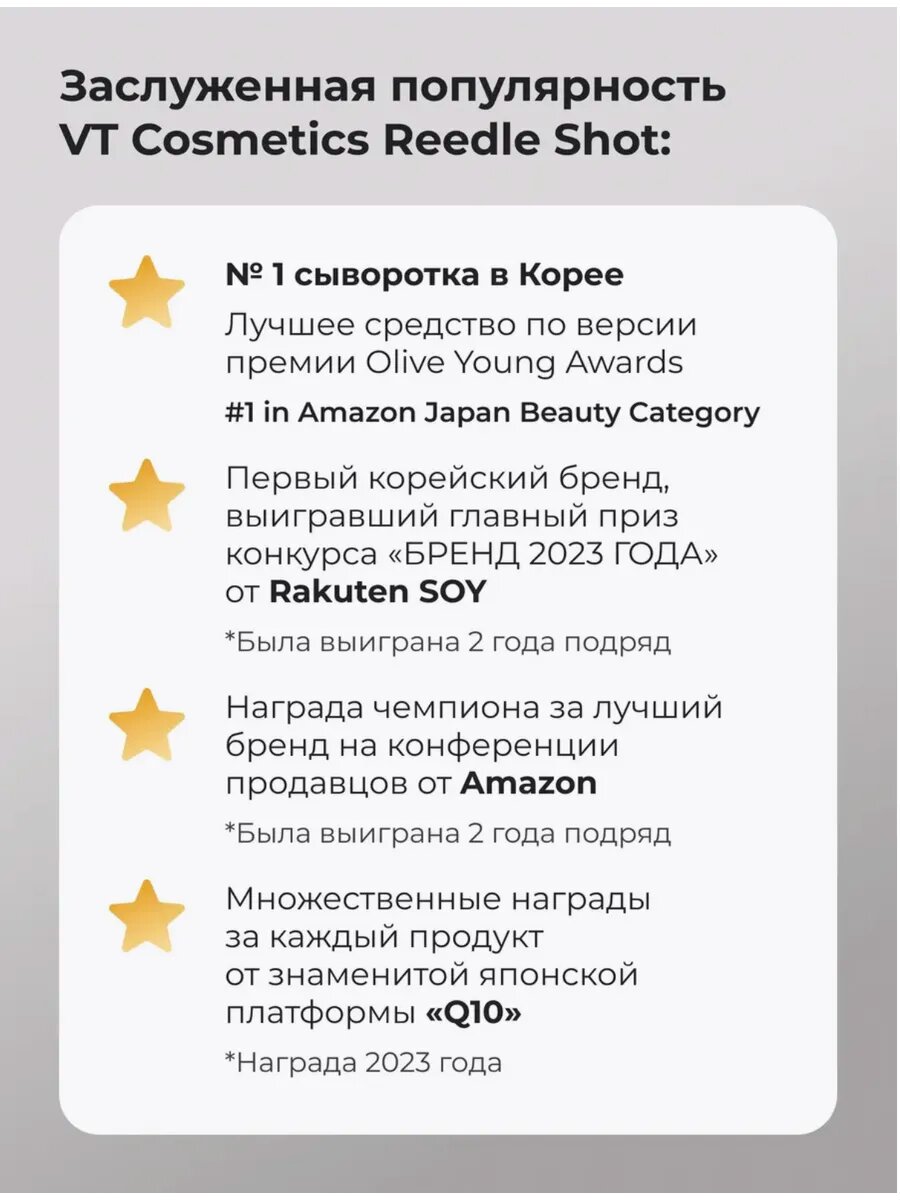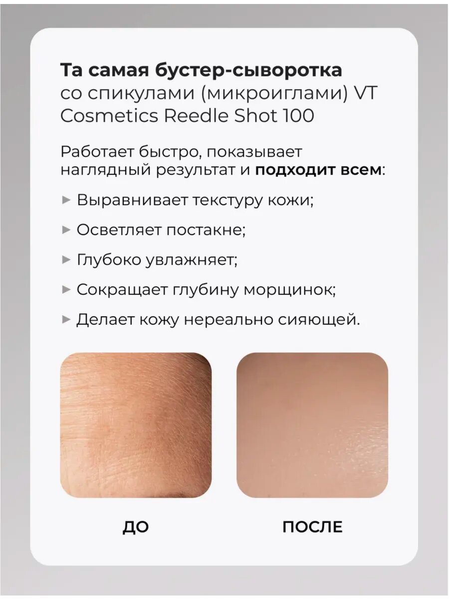 Бустер-сыворотка с микроиглами VT Cosmetics Reedle Shot 100 50ml: сравнение цен, характеристики, фото, актуальное наличие и цены.