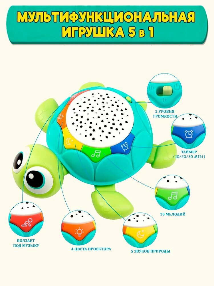 Интерактивная черепашка-ночник музыкальная ползающая для малышей 1+ год подарок на ДР: сравнение цен, характеристики, фото, актуальное наличие и цены.