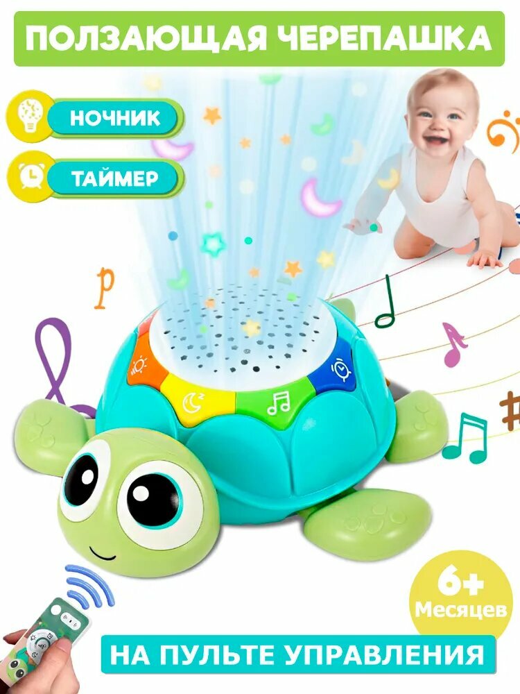 Купить Интерактивная черепашка-ночник музыкальная ползающая для малышей 1+ год подарок на ДР с доставкой по всей России.