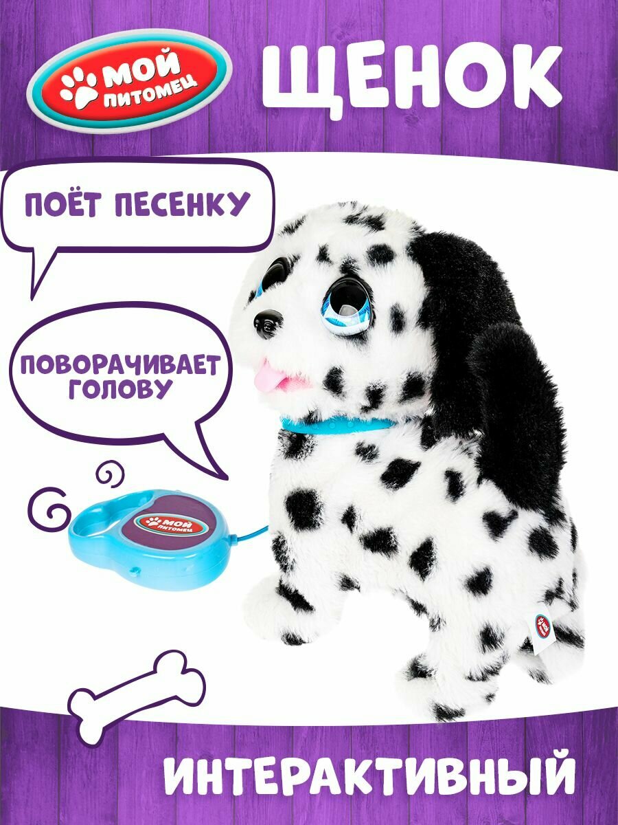 Функции этого щенка обязательно вас порадуют! Мягкая интерактивная игрушка ходит, поворачивает голову, виляет хвостиком, лает и поет. Пульт-поводок поможет вашему ребенку взаимодействовать со щенком, позволяя легко управлять им.