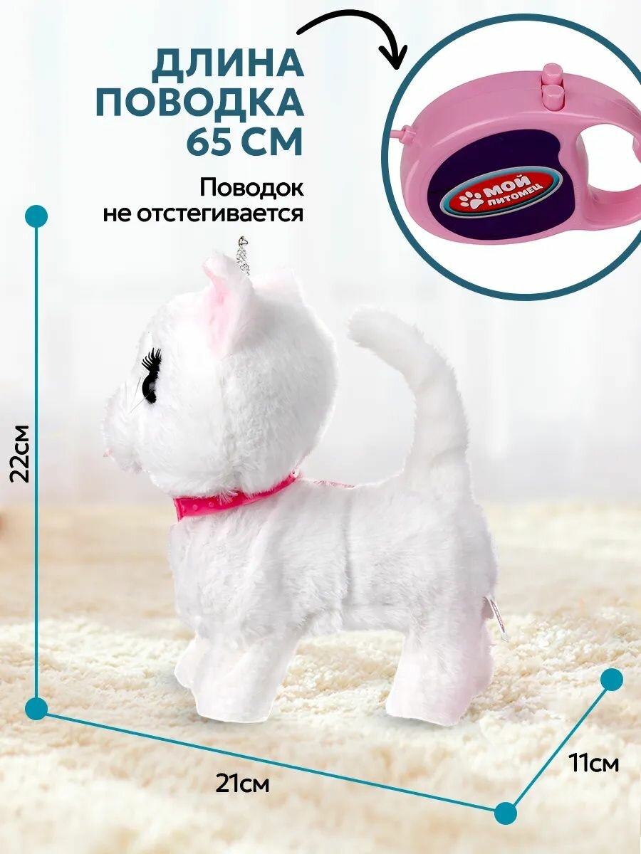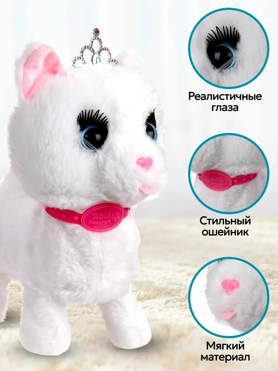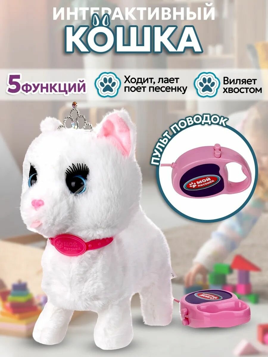 Функции этого котенка обязательно вас порадуют! Мягкая интерактивная игрушка ходит, поворачивает голову, виляет хвостиком, мяукает и поет. Пульт-поводок поможет вашему ребенку взаимодействовать с кошечкой, позволяя легко управлять ей.