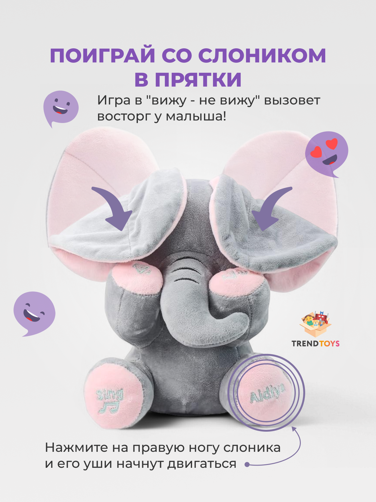 Интерактивная игрушка Слоник TrendToys шевелит ушами, поет и говорит, 30 см: сравнение цен, характеристики, фото, актуальное наличие и цены.