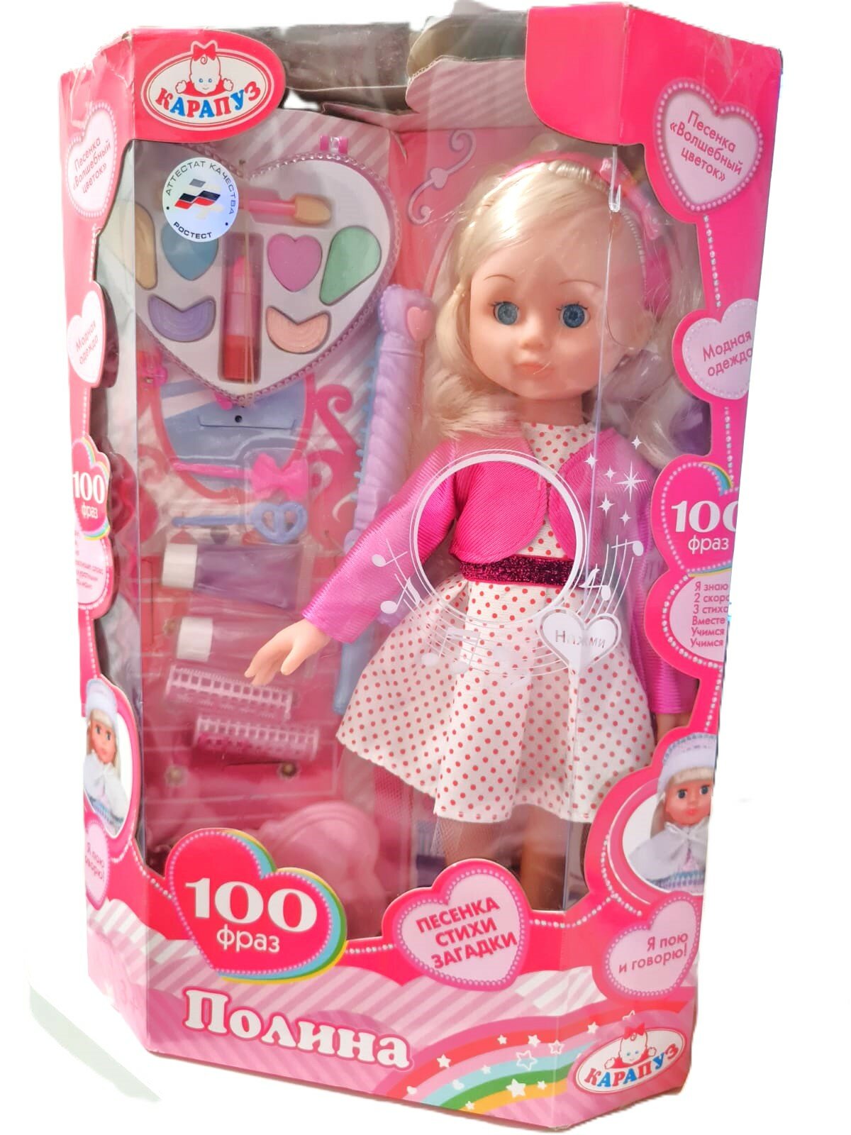 Купить Интерактивная кукла Карапуз «Полина с набором косметики» 100 фраз с доставкой по всей России.