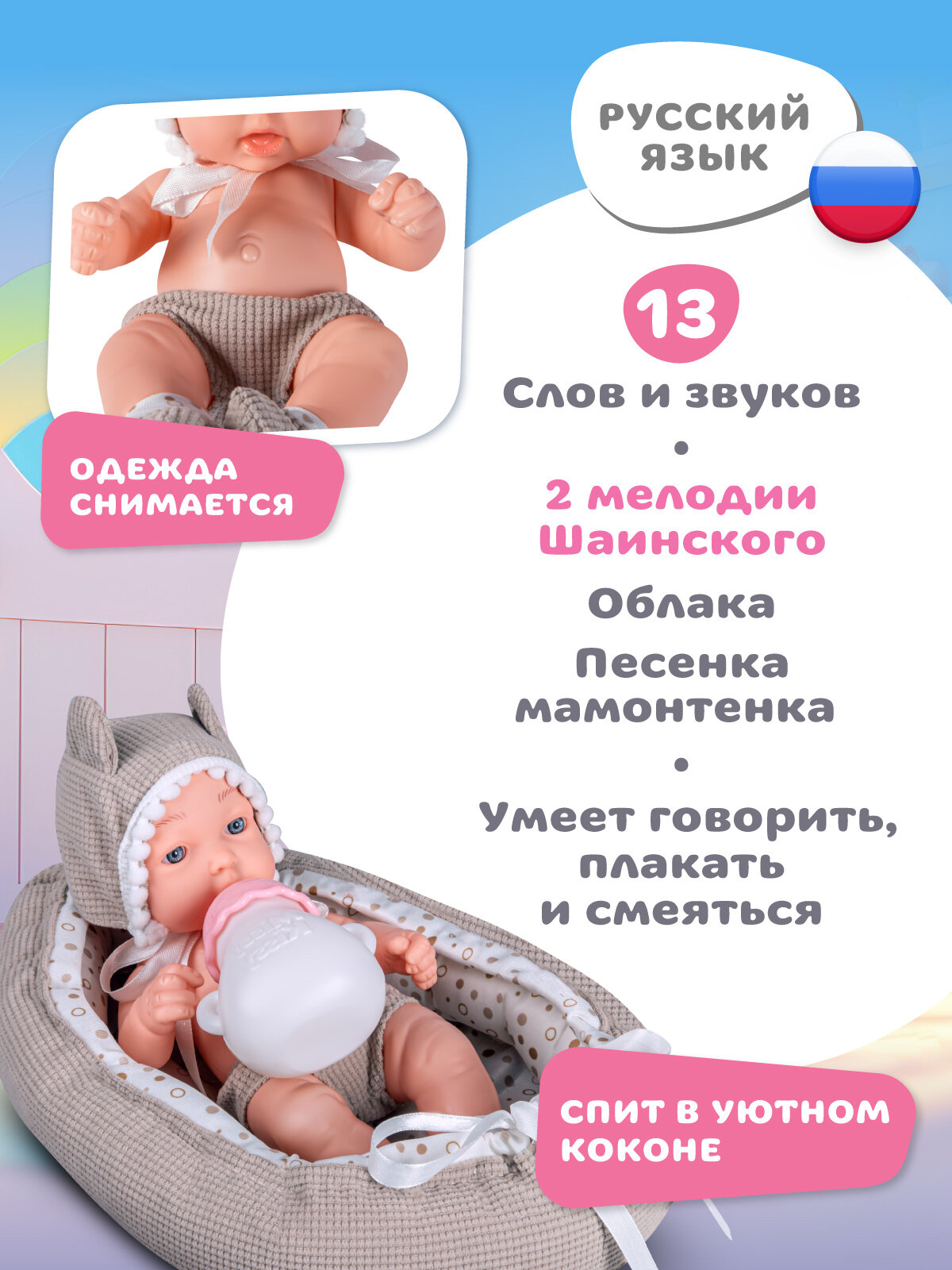 Интерактивная Кукла-Пупс 25 см с коконом и аксессуарами, мелодии В. Шаинского, игра в дочки-матери, JB0213690: сравнение цен, характеристики, фото, актуальное наличие и цены.