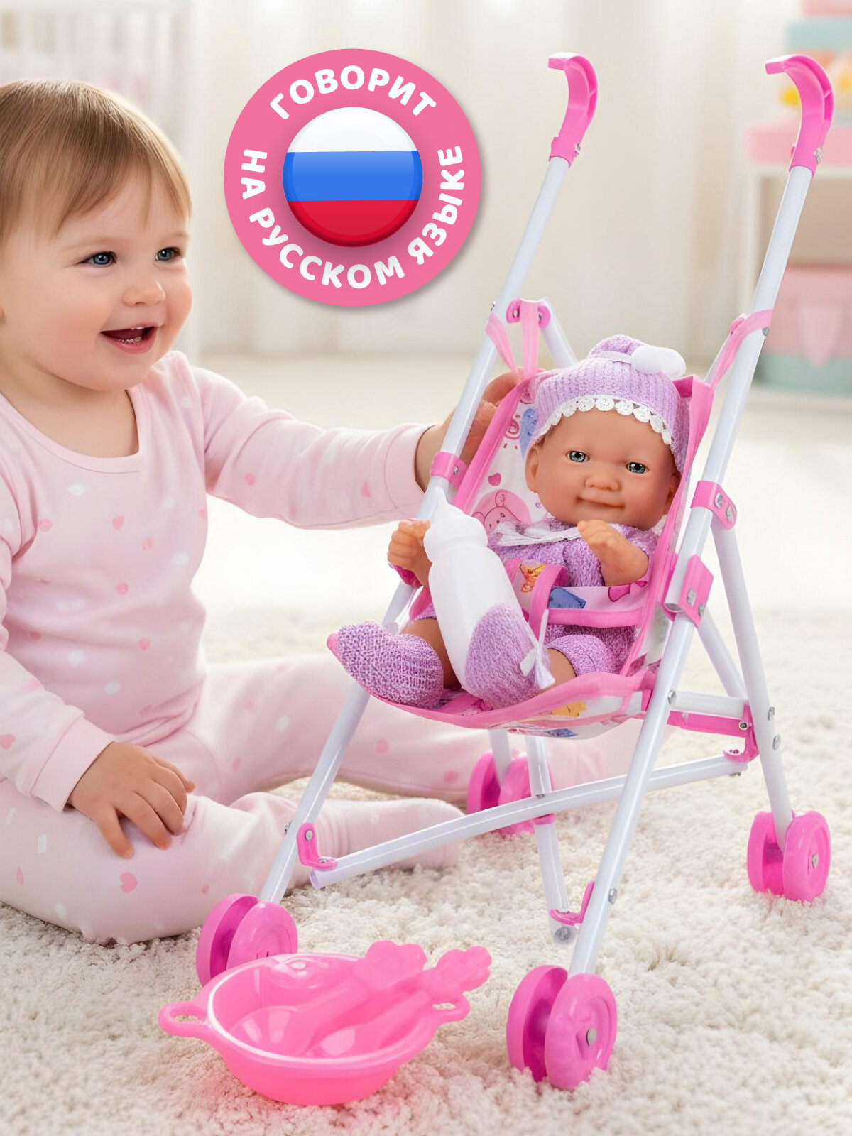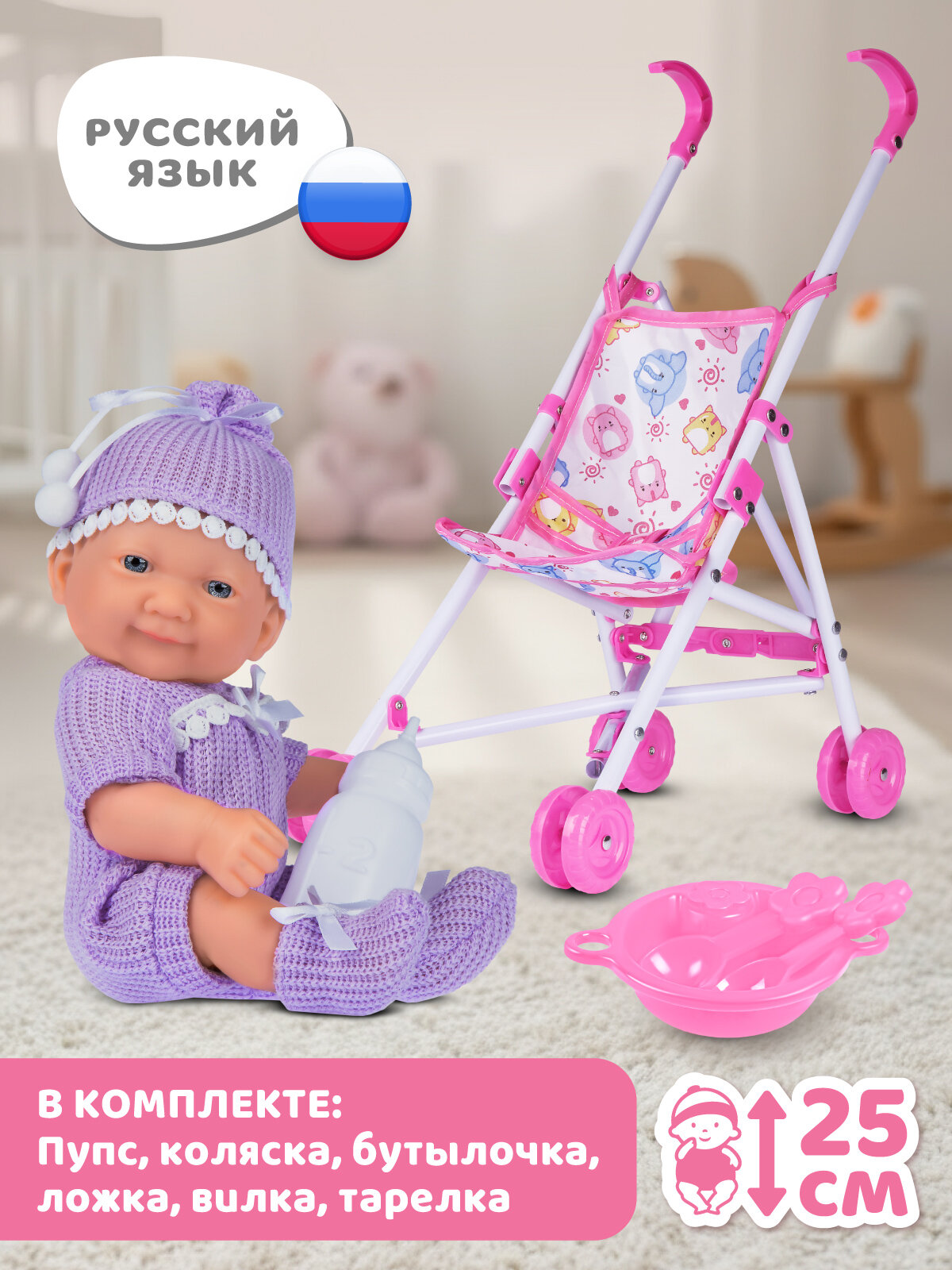 Интерактивная Кукла-Пупс 25 см с коляской и аксессуарами, мелодии В. Шаинского, игра в дочки-матери, JB0214004: сравнение цен, характеристики, фото, актуальное наличие и цены.