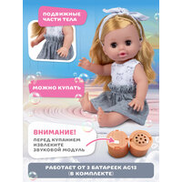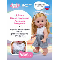 Интерактивный пупсик – это настоящий друг, который оживает в руках вашего ребенка! Милый малыш с большими выразительными глазами и нежными румяными щечками умеет разговаривать на русском языке и сидеть, его ручки и ножки подвижны, что делает игру по-настоящему увлекательной. При нажатии на животик – кукла оживает! Она знает 6 фраз, рассказывает забавный стишок и поет знакомую с детства песенку "Ладушки". Кукла - выполнена с заботой о деталях: закрывающиеся глазки, красивые волосы, которые можно расчесывать и делать разные прически, а возможность пить из бутылочки и ходить на горшок делают ее поистине уникальной. Играя с пупсиком, девочки смогут перенестись в мир заботы и любви, что способствует развитию их эмоционального интеллекта. В комплекте с куклой вы найдете все необходимое для увлекательной игры: бутылочка, соска и горшок. Ваша дочка сможет полностью погрузиться в мир заботы о своем "ребенке", развивая ответственность и чуткость. Кукла изготовлена из высококачественных гипоаллергенных материалов, абсолютно безопасна для детей и имеет все необходимые сертификаты. А еще с ней можно купаться – просто не забудьте перед водными процедурами вынуть звуковой модуль, чтобы сохранить электронную "начинку" игрушки. Это не просто кукла – это первый шаг во взрослый мир, возможность почувствовать себя заботливой мамой, научиться понимать эмоции и развить доброту. Подарите своей малышке эту чудесную игрушку, и вы увидите, как загорятся ее глаза от счастья!