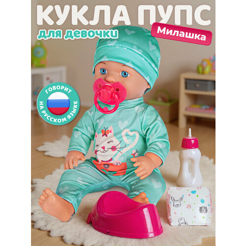Интерактивный пупс кукла для девочки ТМ "Amore Bello" станет отличным подарком, ведь он так сильно похож на настоящего малыша, а еще обладает множеством игровых возможностей. Пупс с аксессуарами имеет реалистичный внешний вид с правильными пропорциями тела, умеет сидеть, ножки и ручки двигаются. Милые черты лица, большие глаза, красивая одежда - всё это обязательно понравится маленькой принцессе. Озвученный пупс может плакать и смеяться, капризничать и лепетать, как настоящий карапуз. Также он умеет пить водичку из бутылочки и ходить на горшок. Говорящая кукла воспроизводит 8 мелодий В. Шаинского, а также произносит фразы на русском языке, среди них "мама", "папа", "я хочу спать" и другие, издаёт различные звуки младенца, а также рассказывает стишок и поёт песенки. В комплект входит набор аксессуаров: горшок, пустышка (соска), бутылочка, тарелка, ложка и подгузник. Игра с такой функциональной куклой научит малышку ответственности, заботе о младших, позволит лучше понимать свои эмоции, а также почувствовать себя в роли заботливой мамы. Кукла с одеждой сделана из качественных материалов, полностью безопасна для детей, имеет необходимый сертификат и соответствует установленным требованиям. Если вам нужны куклы для девочек в подарок, на Новый год, 8 марта или просто без повода, то такая кукла - отличный вариант! Характеристики: Возраст от 3 лет Функции: 35 фраз, звуков, песен Аксессуары: горшок, пустышка (соска), бутылочка, тарелка, ложка и подгузник Батарейки: 3 батарейки типа LR44 Высота пупса: 30 см Материал: пластмасса Упаковка: белая коробка