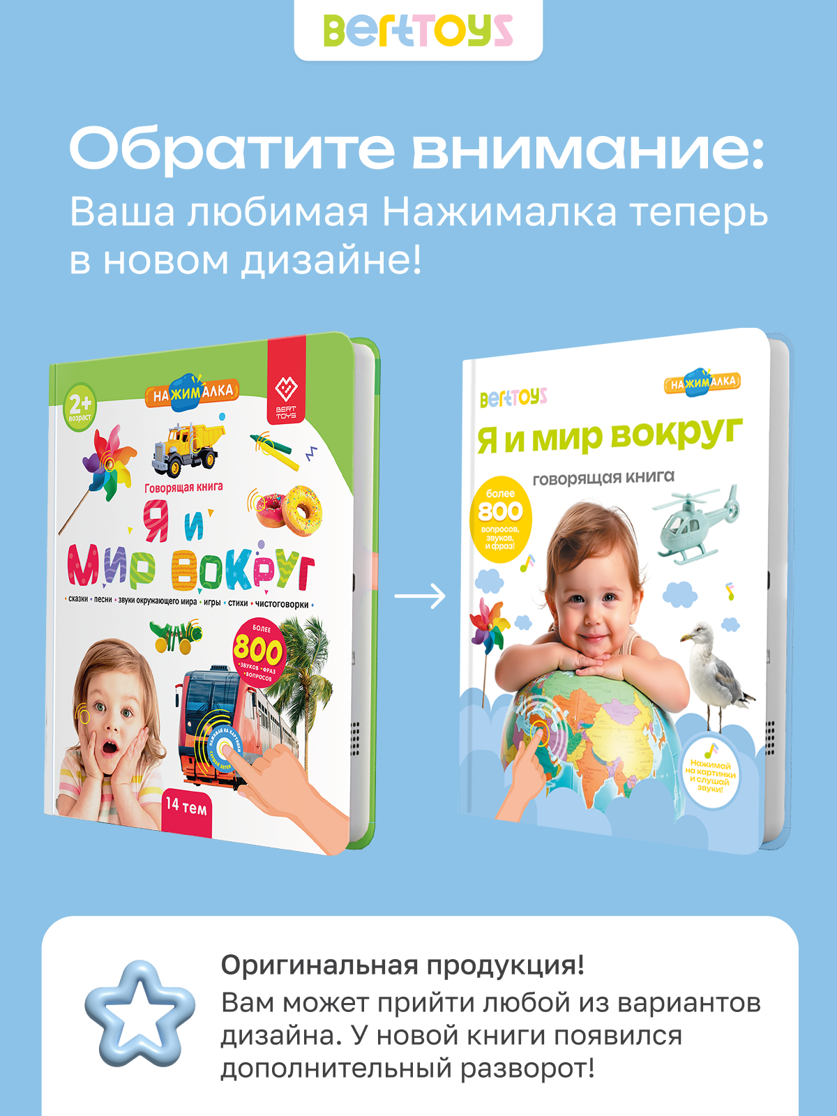 Интерактивная музыкальная игрушка-книжка "Большая Нажималка - Я и Мир Вокруг" от BertToys - это развивающая игрушка, которая подойдет для мальчиков и девочек в возрасте от 2 до 6 лет.
