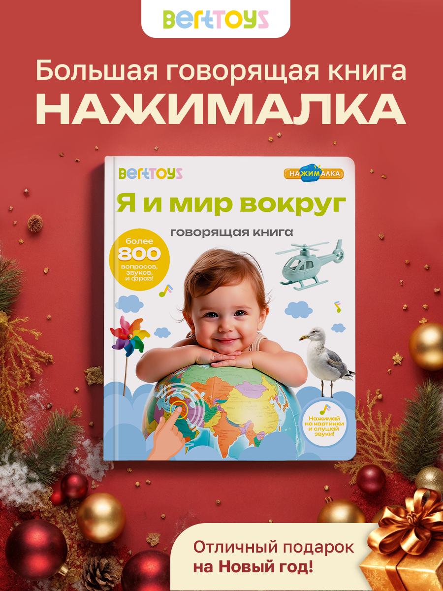 Интерактивная музыкальная игрушка-книжка "Большая Нажималка - Я и Мир Вокруг" от BertToys станет отличным подарком для вашего ребенка и поможет ему в развитии множества навыков и умений.