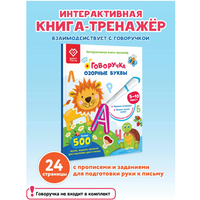 Занимаемся по интерактивной книге «Озорные буквы» вместе с Говоручкой! Приобретая большую книгу для обучения письму и чтению, вы получаете интерактивную книжку-игрушку для девочек и мальчиков, мини-проигрыватель встроенного контента, обучающую игру и комплект многоразовых прописей. В музыкальной книжке для детей собрано более 500 звуков, заданий, прописей для развития мелкой моторики и подготовки руки к письму. Уникальная особенность занятий по книге-тренажёру – возможность писать исчезающими чернилами! Малыши от 3 лет обязательно захотят попробовать стать волшебниками и с радостью станут выполнять простые задания – обводить узоры и дорожки, проходить лабиринты. Дети от 4 и старше начнут знакомство с буквами – научатся их называть и прописывать по образцу. Волшебные чернила исчезают всего за 5–10 минут! Так что можно тренироваться сколько угодно снова и снова, с каждым разом улучшая результат. В книге «Озорные буквы» картонная обложка и 24 страницы из плотной бумаги для многократного использования. На каждом развороте – разнообразные задания для развития мелкой моторики и постановки руки для письма, подготовки к садику и школе, тренировки усидчивости, внимания, расширения словарного запаса. С помощью Говоручки интерактивная детская книга сама озвучит всё, что нарисовано на страничках (достаточно подносить ручку-тренажёр к звёздочкам), будет проговаривать буквы при прописывании, а ещё предложит интересные игровые задания: например, обрисовать ёлочку или показать предметы на картинках. Если ищете необычный подарок своему ребёнку или друзьям на День рождения, малышам на любой праздник, книжка «Озорные буквы» с Говоручкой – та самая развивающая игрушка, которая удивит, вызовет интерес и поможет быстро научиться писать. Польза от занятий по ней огромна: развитие речи и мелкой моторики, тренировка памяти, внимания, фантазии, воображения, расширение кругозора, обеспечение быстрой и лёгкой адаптации в начальной школе. А главное – благодаря исчезающим чернилам ребёнок поверит в свои волшебные способности и будет с огромным удовольствием без принуждения играть и учиться сам! Многоразовых прописей и разнообразных заданий хватит надолго. Интерактивная книга-тренажёр взаимодействует с Говоручкой. Перед использованием книжки нужно подключить игрушку к ПК через USB, загрузить файл «Озорные буквы» – и готово. Удобный формат позволяет брать развивающую книгу игрушку в путешествие, в гости или на длительную прогулку. Пусть дети проводят время с пользой и занимаются с радостью!