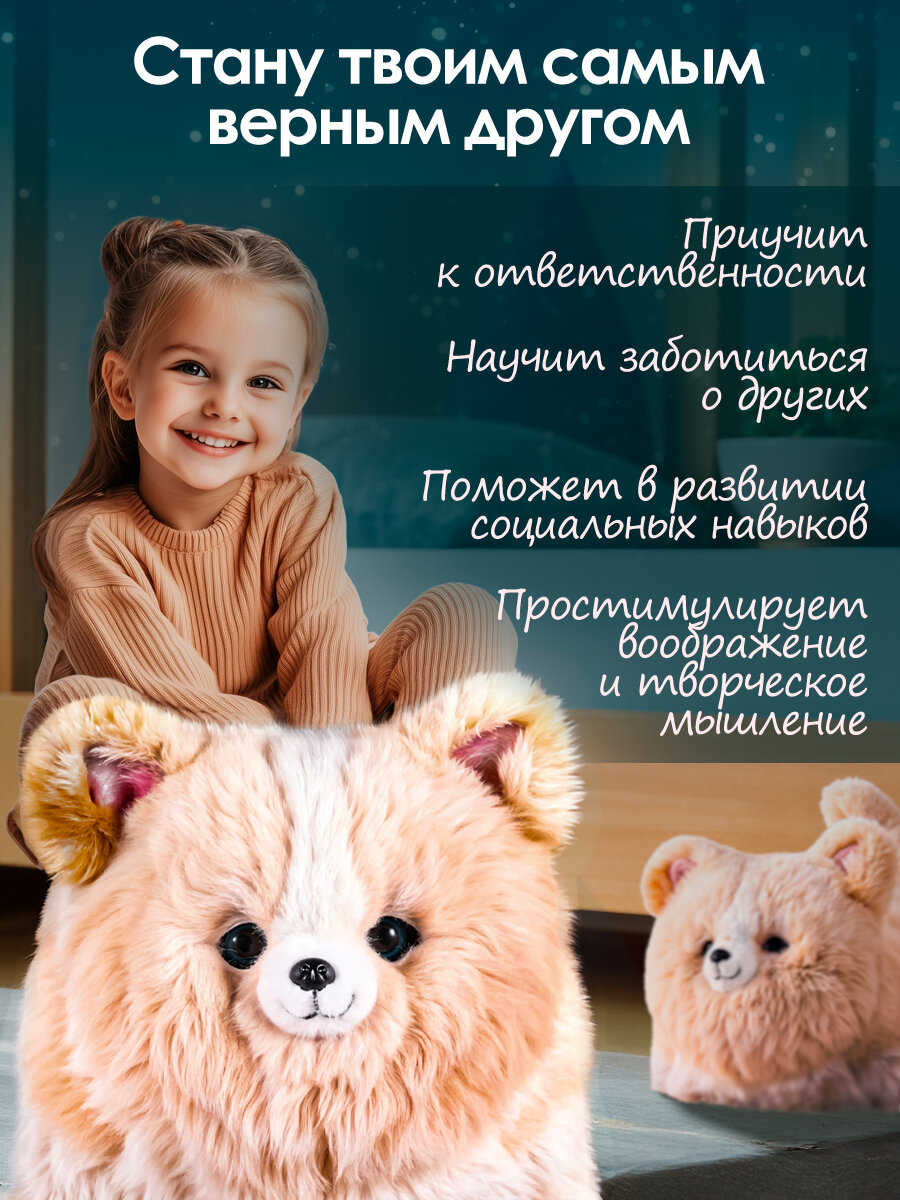 Игрушечное домашнее животное подойдет как для мальчика, так и для девочек. Веселый пушистый друг отлично впишется в любые игровые сценарии. Его можно взять с собой в садик или весело проводить время дома.