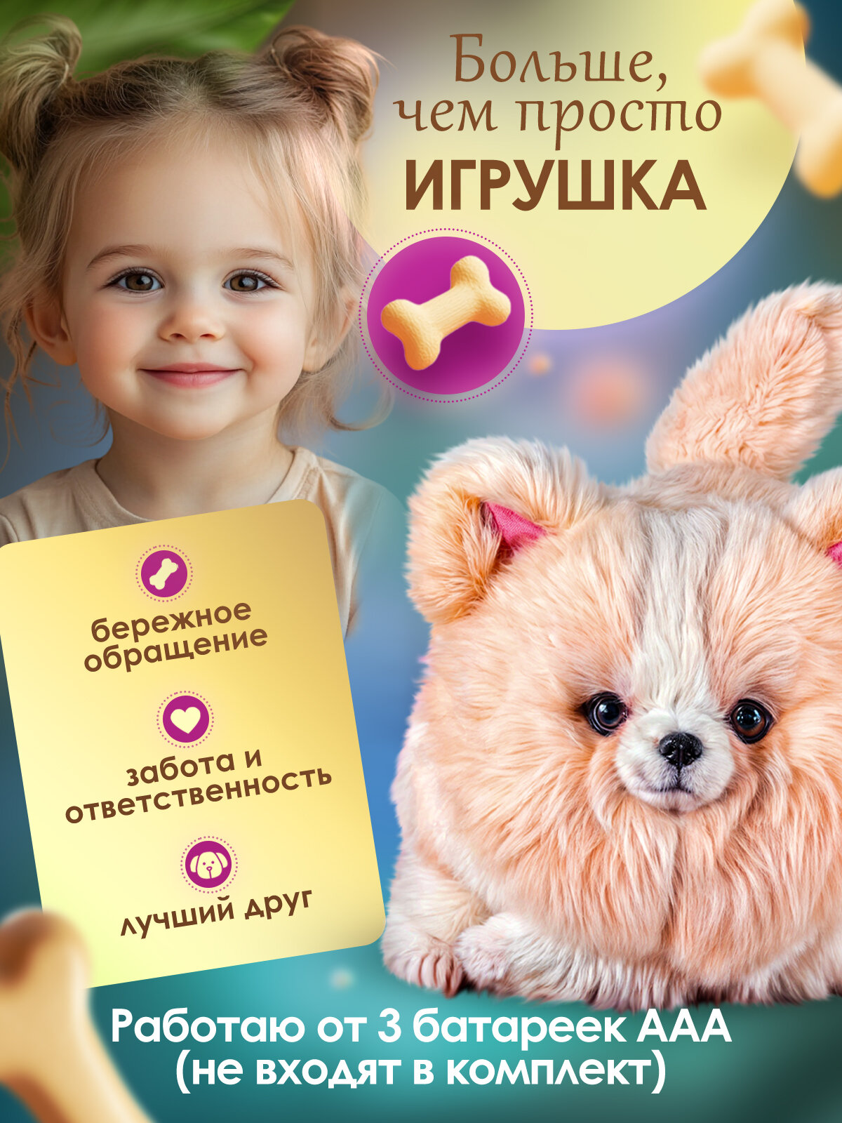 Игрушечное домашнее животное подойдет как для мальчика, так и для девочек. Веселый пушистый друг отлично впишется в любые игровые сценарии. Его можно взять с собой в садик или весело проводить время дома.