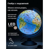Купить Интерактивный глобус Зоогеографический (Детский) 32 см, с LED-подсветкой и утяжелителем в подставке+ Развивающий атлас «Мир вокруг тебя» + VR очки с доставкой по всей России.