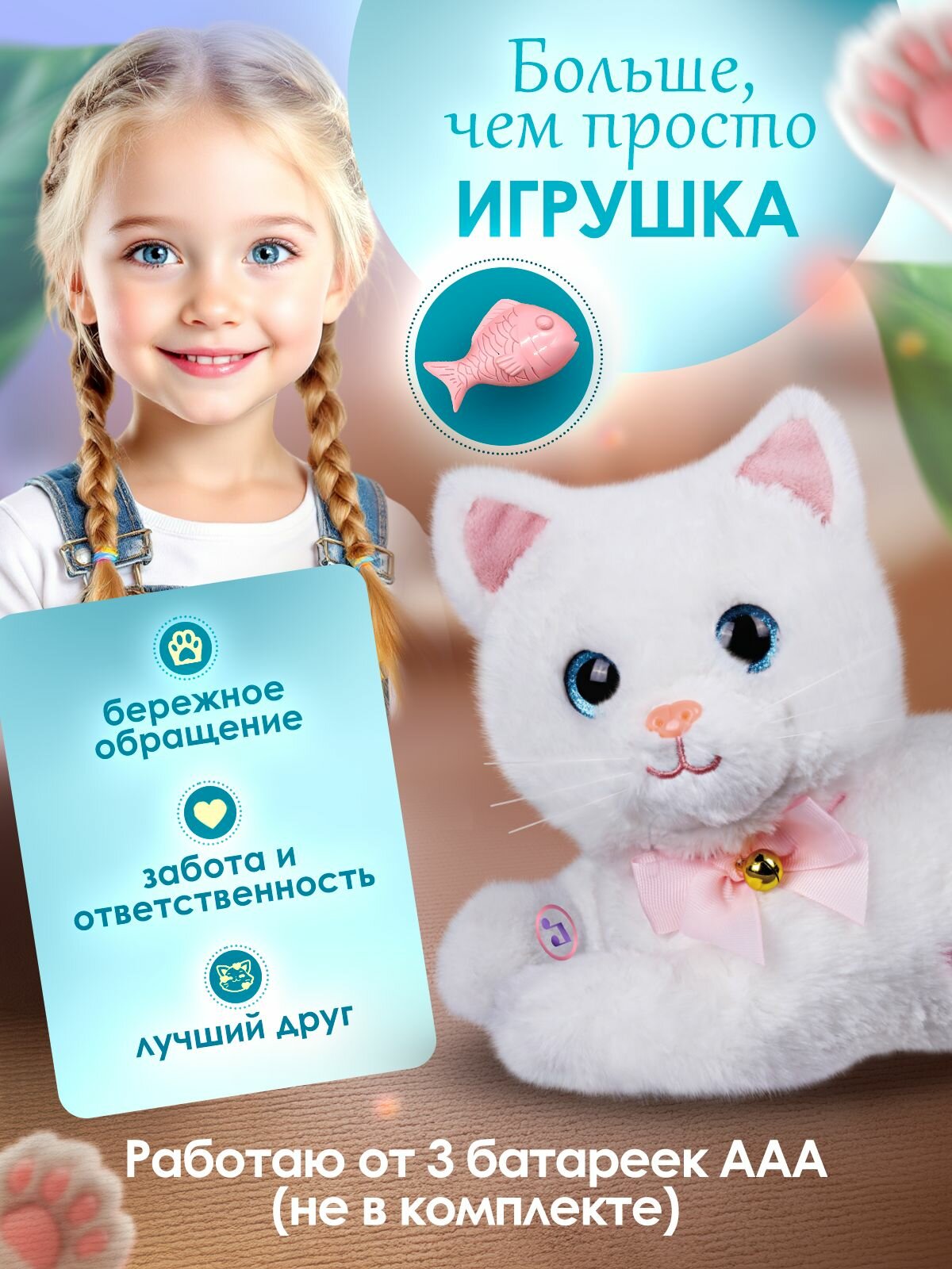 Способствует развитию социальных навыков, а также стимулирует творческое мышление, что делает котика идеальным выбором для родителей.