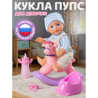 Купить Интерактивный Пупс 25 см с качалкой-лошадкой и аксессуарами, смеется/плачет/говорит, мелодии В. Шаинского, JB0213621 с доставкой по всей России.
