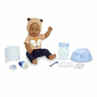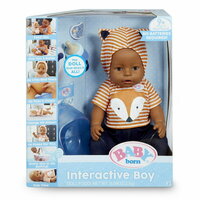 Интерактивный пупс Baby Born – это очаровательная кукла-мальчик мулат с девятью реалистичными функциями. Он умеет пить из бутылочки, есть специальную кашу, ходить на горшок, плакать, двигать ручками и ножками, а также принимать ванну. В комплекте: • свидетельство о рождении, • бутылочка, • соска, • подгузник, • тарелка и ложка, • горшок, • пакет детского питания.
