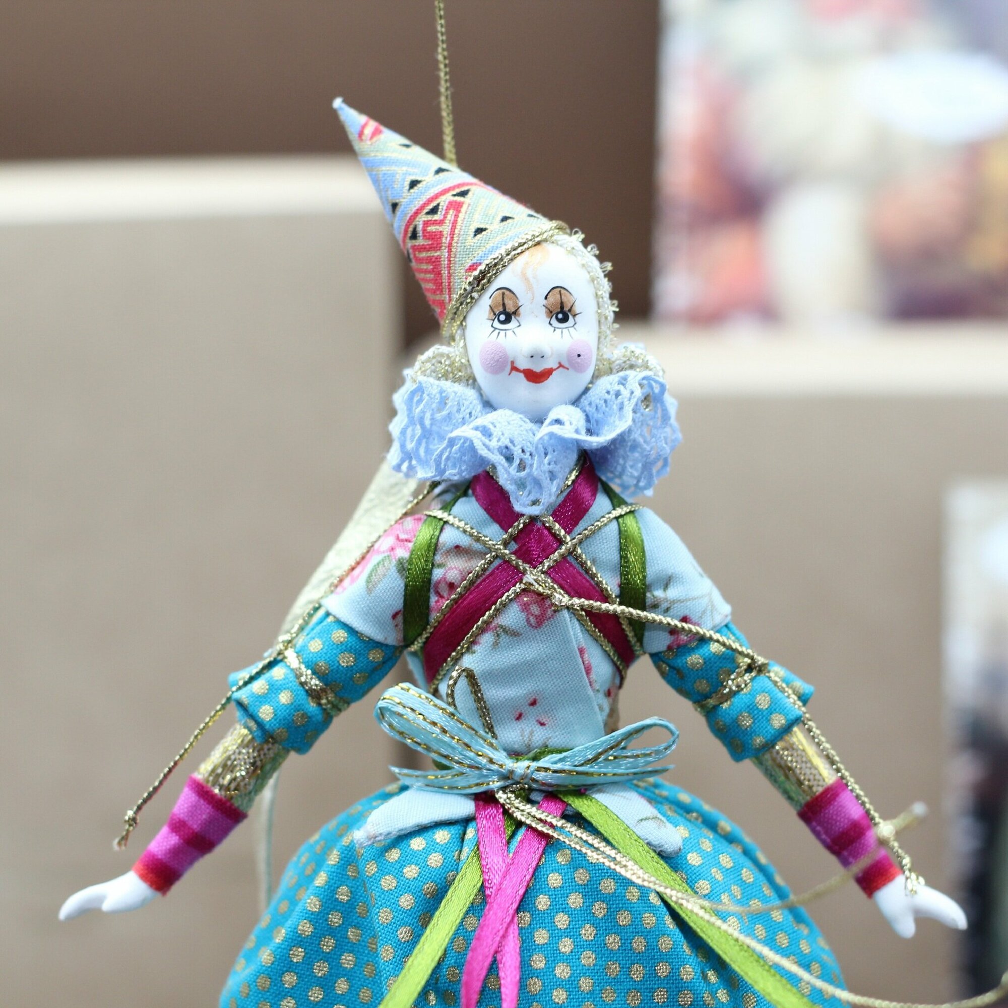 Интерьерная подвесная елочная игрушка "Клоунесса", ручная работа