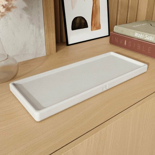 Интерьерный поднос выполнен из архитектурного бетона в нейтральных тонах, стойкий и надёжный.
