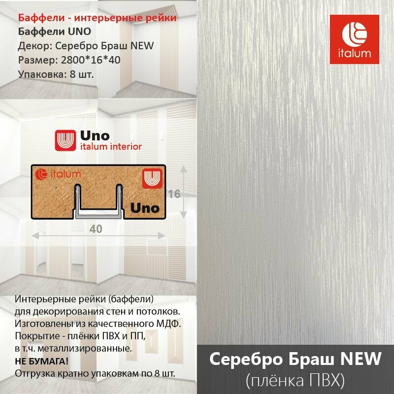Интерьерные рейки (Баффели) UNO 16*40 — Серебро Браш (8 шт.): сравнение цен, характеристики, фото, актуальное наличие и цены.