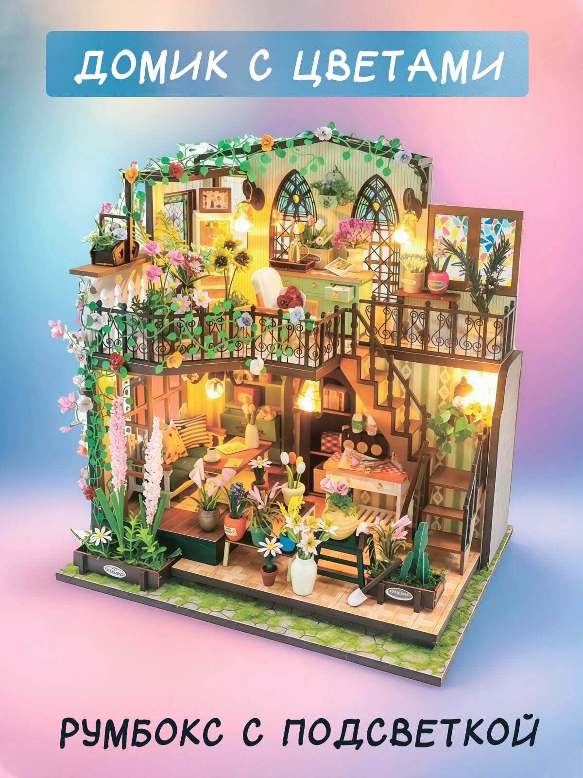Румбокс "Дом в цветах" — это уникальный интерьерный конструктор, превращающий создание миниатюрного сада в увлекательное и творческое занятие. Этот миниатюрный сад в виде цветочной оранжереи идеально подойдет любителям цветов, садов и уютных интерьеров.