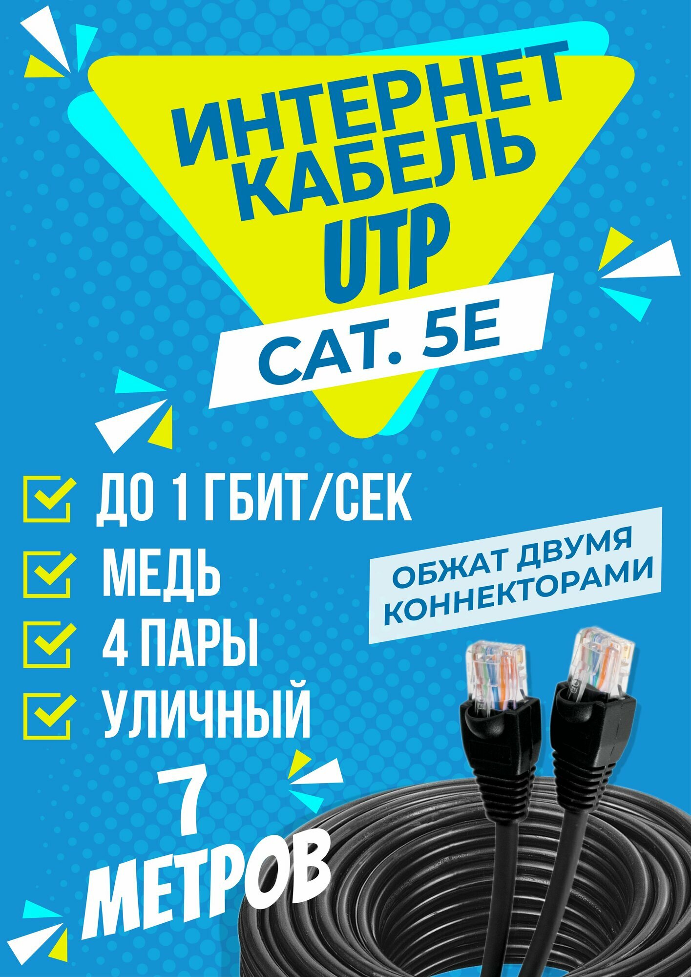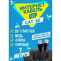 Интернет кабель уличный UTP 7 метров, категории 5е, RJ45 LAN / сетевой / Ethernet / UTP патч-корд черный: сравнение цен, характеристики, фото, актуальное наличие и цены.