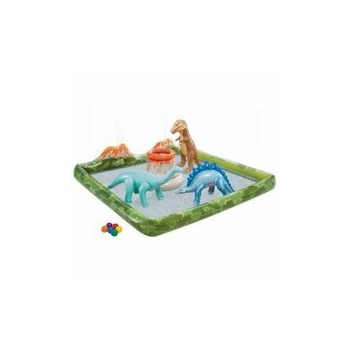 Jurassic Adventure Inflatable Play Center INTEX 56132 NP. Надувной игровой центр Play Center "Динопарк". Разбудите воображение вашего ребенка, воссоздав доисторическую сцену у себя на заднем дворе! Малыш может играть в надувные игрушки, развивать меткость, загорать и плескаться в воде. Яркий мини бассейн, состоит из множества функциональных и интересных игрушек, которые по достоинству оценит кроха. Шарики можно использовать как снаряд для метания в жерло вулкана. Бортики игрового центра надувные. Игрушки можно использовать отдельно. В комплектацию водного надувного мини аквапарка входит: Встроенный распылитель воды с насадкой для садового шланга Включает 3 отдельных динозавра и 2 кактуса. Отдельно стоящая игра с бросанием мячей «Вулкан» с 6 мячами Fun Ballz Удобная сливная пробка Ремонтный патч включен в комплект поставки. Характеристики: Размер: 201 х 201 х 36 см Объем воды: 410 л. Макс. уровень воды: 11 см Макс. нагрузка: 81 кг Материал: ПВХ Особенности: Фонтан-разбрызгиватель Надувные игрушки. Динозавр-3 шт. Кактус-2 шт. Корзина для метания шаров-1 шт Мячики: 6 шт, диаметр 8 см. Возраст: 2 + Фонтанчик подключается к садовому шлангу (в набор не ходит). Насос для накачивания игровой площадки приобретается отдельно. Детская игровая площадка с бассейном понравится детям и взрослым. Есть сливной клапан, ремкомплект, коробка, инструкция.