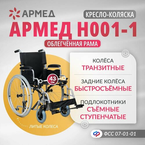 | Особенности | антиопрокидыватель, дополнительные колеса для преодоления узких и труднопроходимых мест, откидная подножка, ручки для толкания, складная спинка, съемная подножка, съемные колеса, съемные подлокотники |