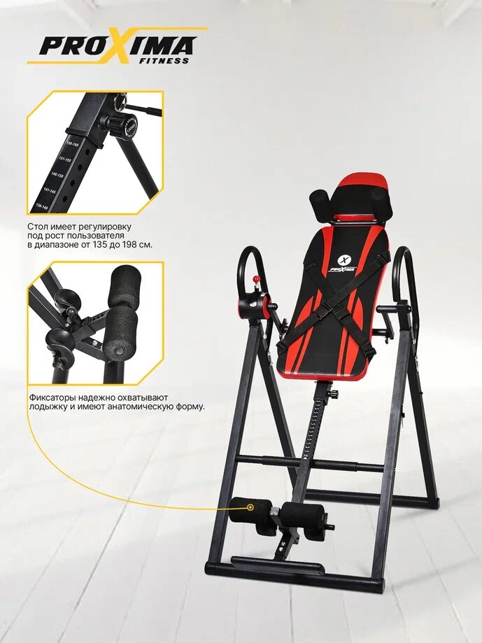 Рама стола изготовлена из высокопрочной легированной стали и позволяет тренироваться пользователям весом до 150 кг. Конструкция стола разработана совместно с медицинскими специалистами, и как результат, стол точно сбалансирован, создает бесшумный поворот без рывков и надежную фиксацию в перевернутом положении.