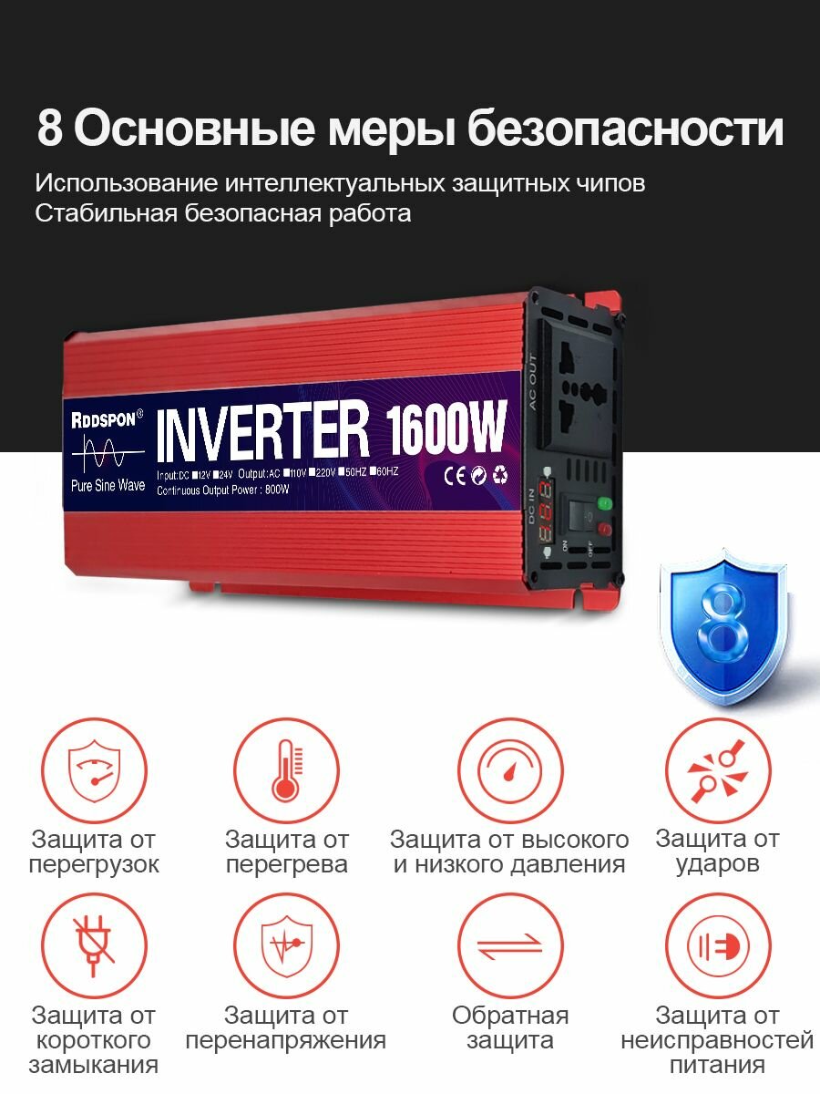 Инвертор 1600 Вт, 12 — 220 В Чистый синус RDDSPON, Инвертор напряжения, Инвертор защиты от перегрузки, кемпинг: сравнение цен, характеристики, фото, актуальное наличие и цены.