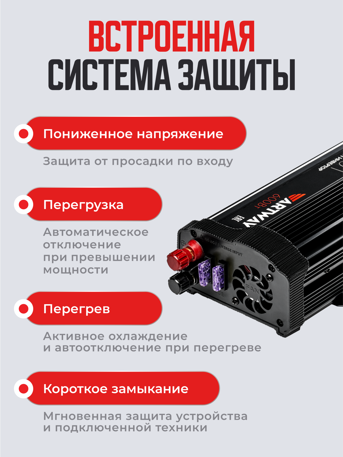 Инвертор автомобильный Artway AI-6001 преобразователь напряжения 12В в 220В, чистый синус: сравнение цен, характеристики, фото, актуальное наличие и цены.