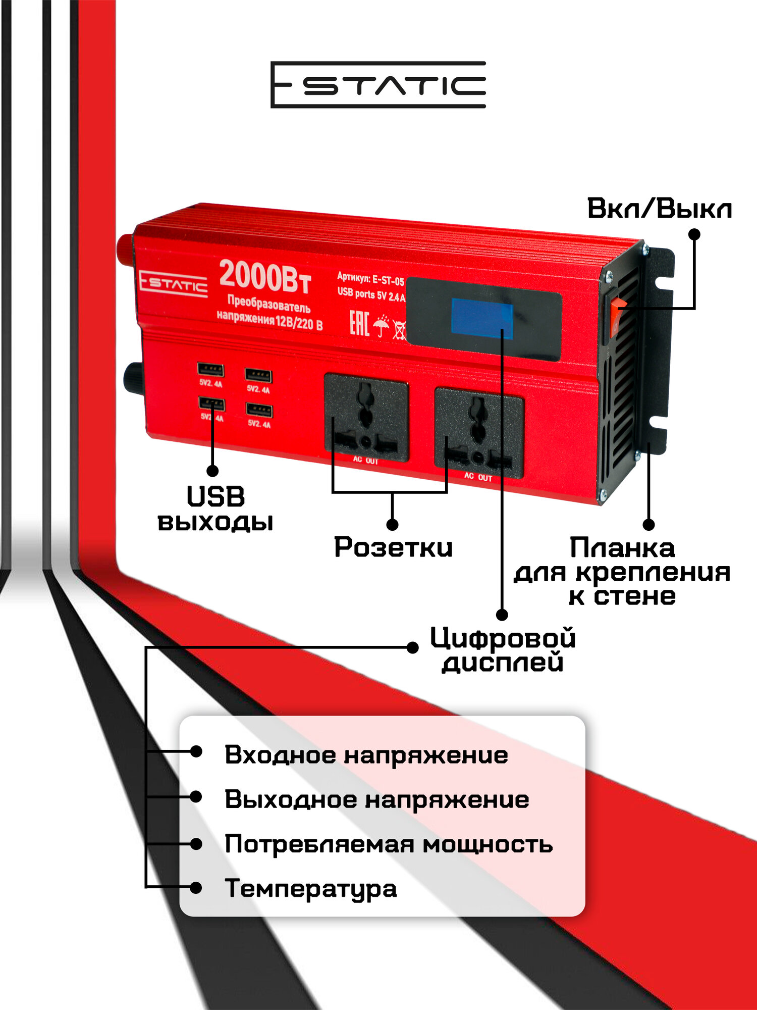 Автомобильный инвектор (преобразователь 12-220 вольт для дома) - это универсальное решение для тех, кто ценит мобильность и комфорт! Используйте его как в автомобиле, так и дома - для дальних поездок, кемпинга, работы на выезде, а также в качестве резервного источника питания на даче или в доме - подключайте чайник, фен, мультиварку! Работайте с электроинструментом там, где нет розетки - стройка, дача, автосервис.