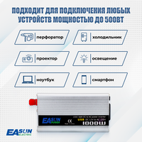 Купить Инвертор автомобильный 12 220В, 1000 Вт. Преобразователь напряжения. EASun Electric. К прикуривателю. Евророзетка и USB. Постоянная мощность до 500 Вт. с доставкой по всей России. Инвертор автомобильный 12 220В, 1000 Вт. Преобразователь напряжения. EASun Electric. К прикуривателю. Евророзетка и USB. Постоянная мощность до 500 Вт.: сравнение цен, характеристики, фото, актуальное наличие и цены.