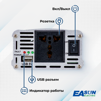 Инвертор автомобильный 12 220В, 1000 Вт. Преобразователь напряжения. EASun Electric. К прикуривателю. Евророзетка и USB. Постоянная мощность до 500 Вт.