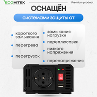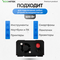 Инвертор автомобильный 12 220В, 1200 Вт (пост нагрузка до 600 Вт). Чистый синус. EcoHitek. Подключение приборов, эл. инструмента, котла отопления.: сравнение цен, характеристики, фото, актуальное наличие и цены.